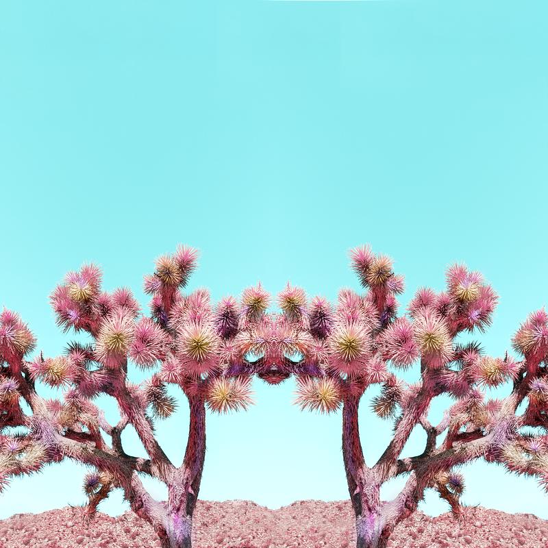 Mirrored joshua tree in Joshua Tree, California. Edited in pink.