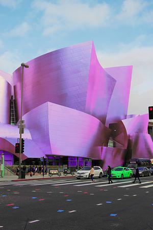 Colorfully Edited Concert Hall in Downtown Los Angeles, California.
