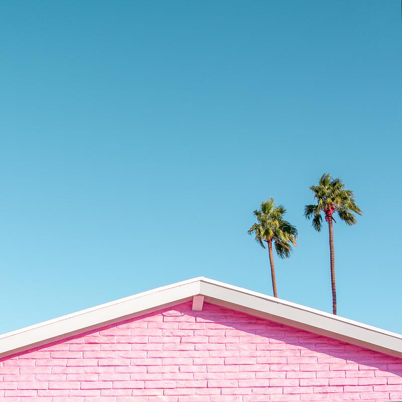 Pink House Roofline with Palm Trees - Palm Springs, California